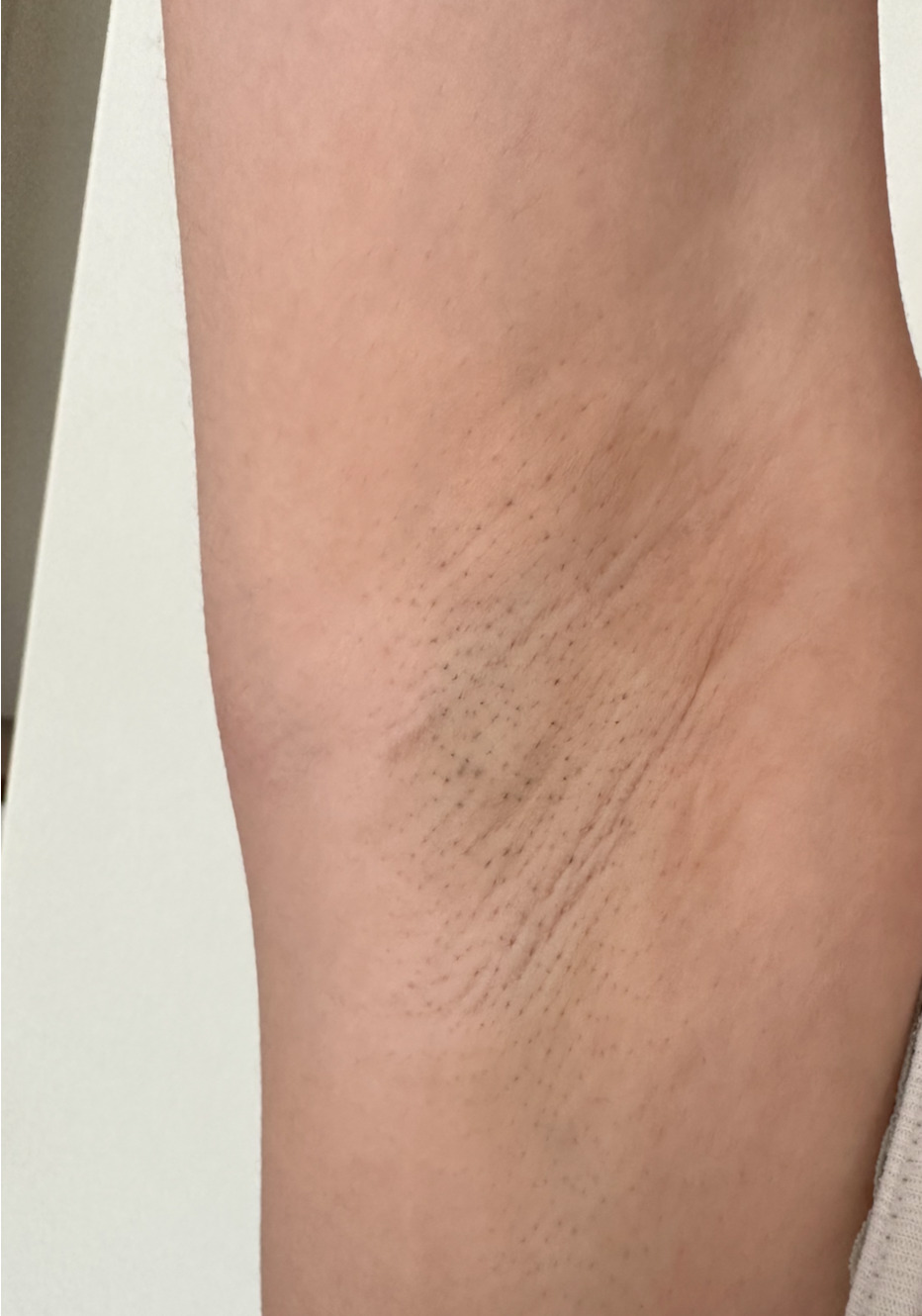 (脱毛後、一時的に毛が黒く反応しているせいもあるとは思います)
