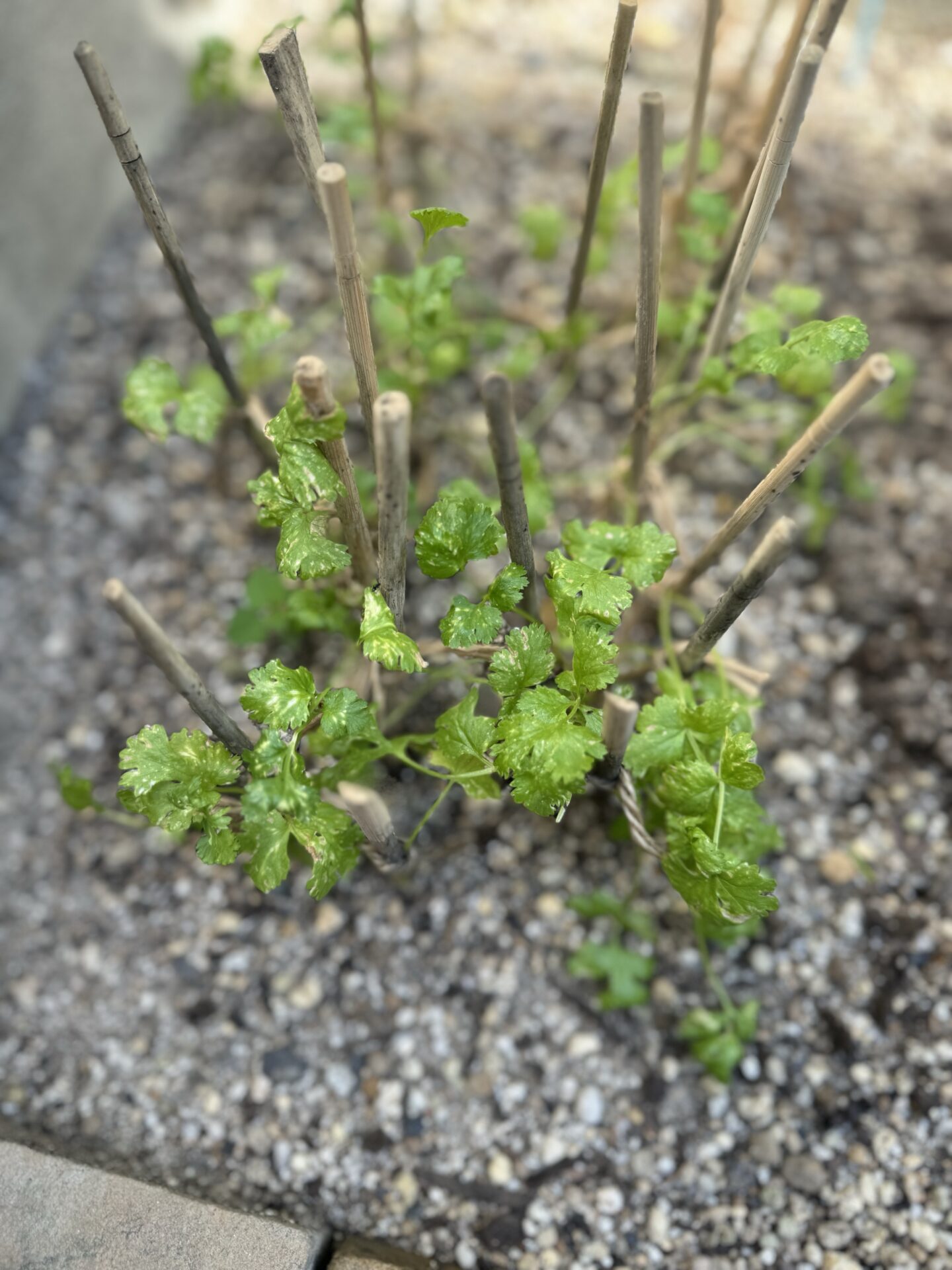 地植えでパクチーを育て、梅雨の時期に雨に打たれて病気になってしまったパクチー。。。