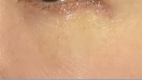内出血の後で頬が黄色くなっていますがマスクで隠せる程度です。