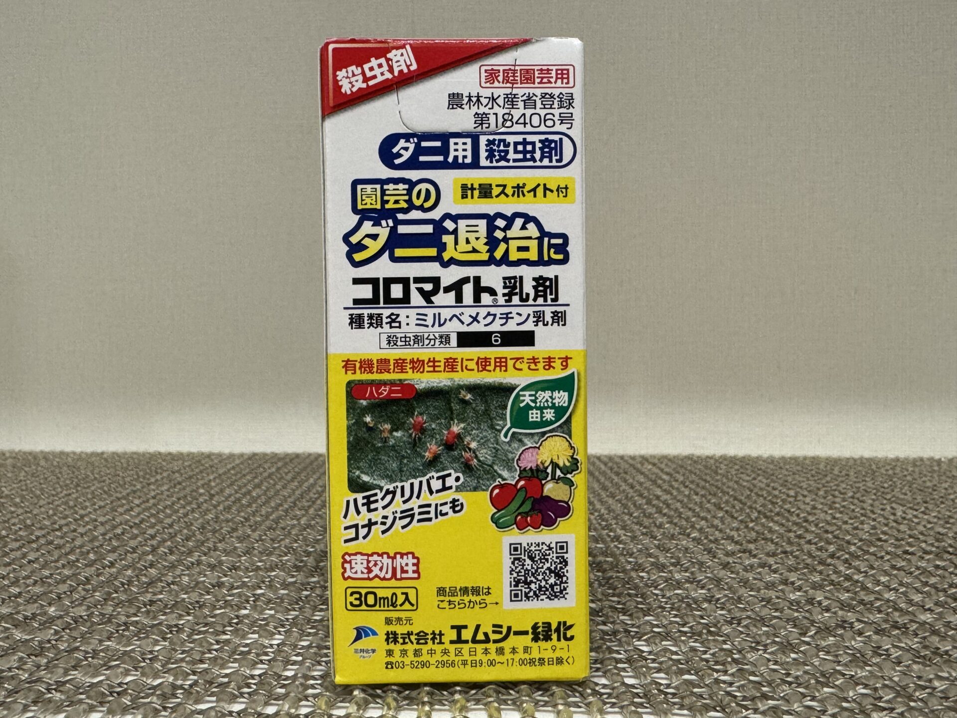 いろいろ調べたら、園芸のダニ退治にコロマイト乳剤!!