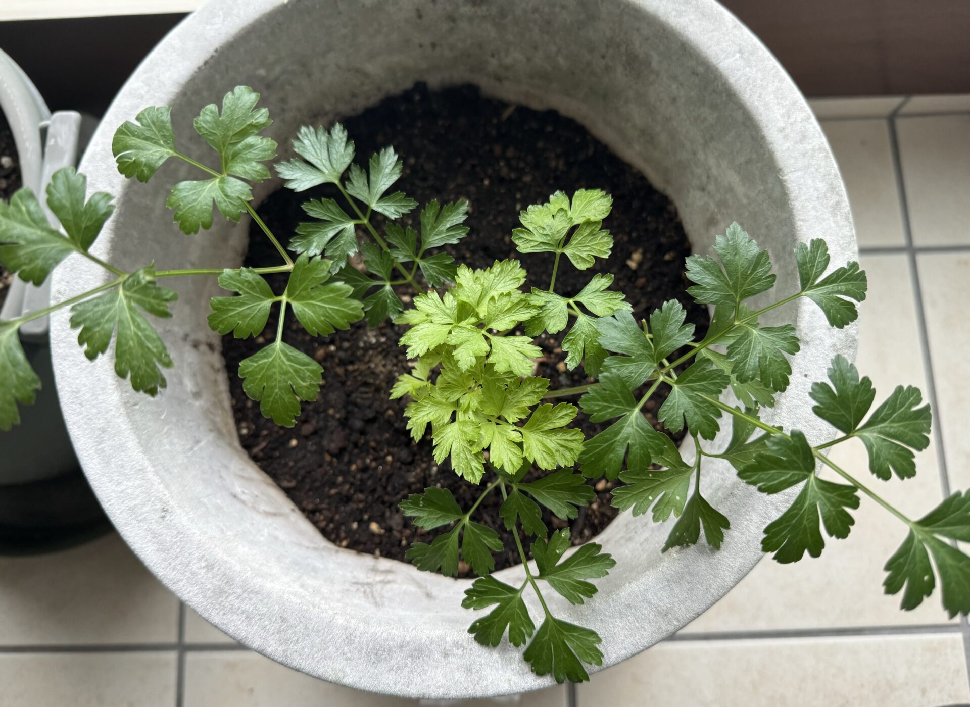 位置的にもイタパセとディルの間に植えてるハーブは無事だから、好みなのかな。