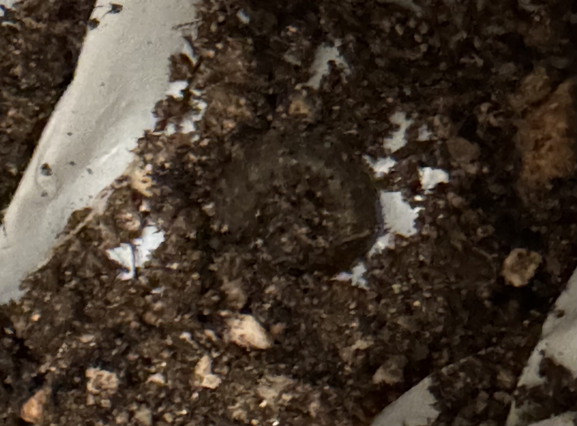 真ん中のやつ。本当はもっと丸まってた。土の色に合わせてめっちゃ同化してる。